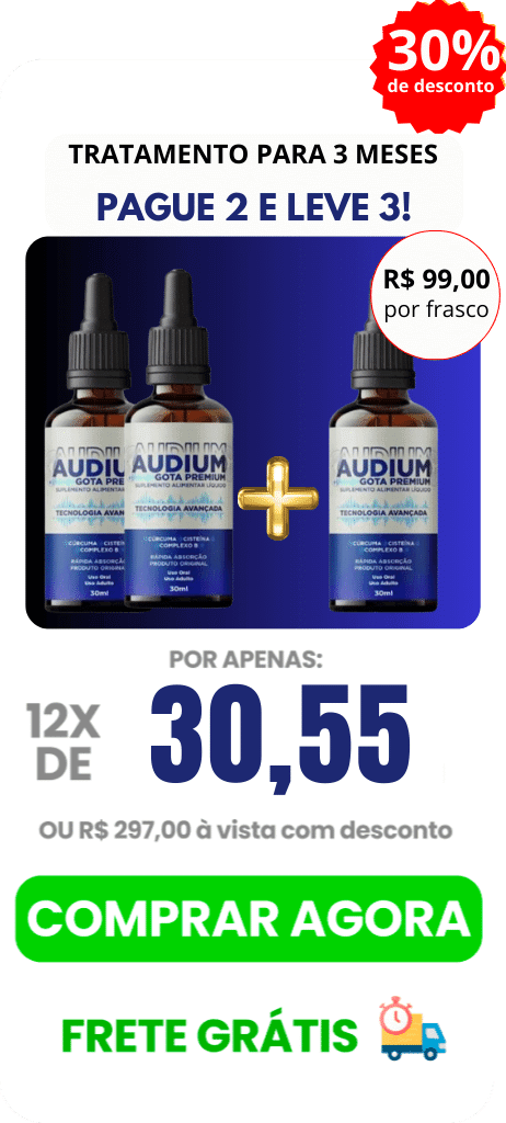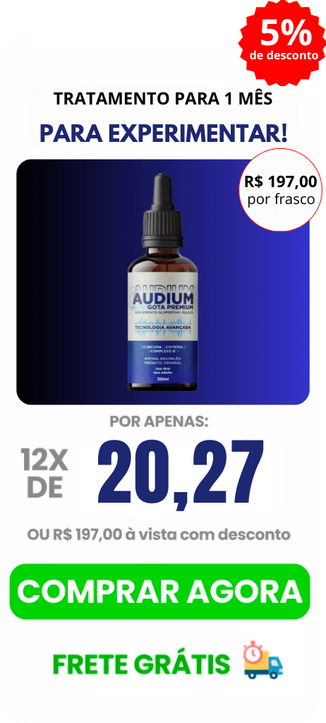 O Audium Gotas Premiun® é um composto 100% natural aprovado pela ANVISA, que proporciona a reversão dos problemas de zumbido no ouvido (tinnitus) e ajuda na melhoria da audição.